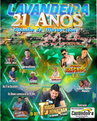 O município de Lavandeira (TO), sudeste do estado, completa 21 anos e vai fazer uma festona agora em dezembro.