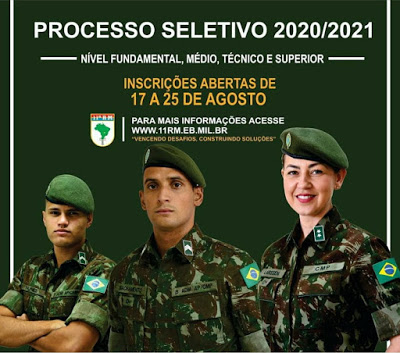 A Força Terrestre abriu processo seletivo para nível fundamental, médio, técnico e superior.