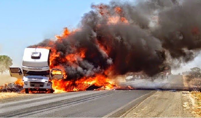 As imagens são assustadoras. Mas, felizmente, ninguém saiu ferido desse incrível incêndio de veículo automotor, ocorrido ontem, domingo (28), na BR-020.