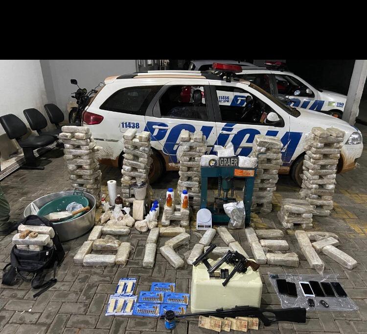 O grupo informou outros dois locais, onde foram realizadas novas diligências. Ao todo, foram apreendidos 217 quilos de skunk, 6 quilos de pasta base de cocaína, 3 quilos de insumos para refino de drogas, uma prensa industrial, quatro armas de fogo (1 pistola calibre 9mm, 1 revólver calibre 357 Magnum, 1 revólver calibre .22 e 1 arma longa calibre .22), 400 munições de diversos calibres, seis celulares, uma balança de precisão, além dos dois veículos de luxo. Os objetos apreendidos e suspeitos foram levados à Central Geral de Flagrantes (CGF) da capital.
