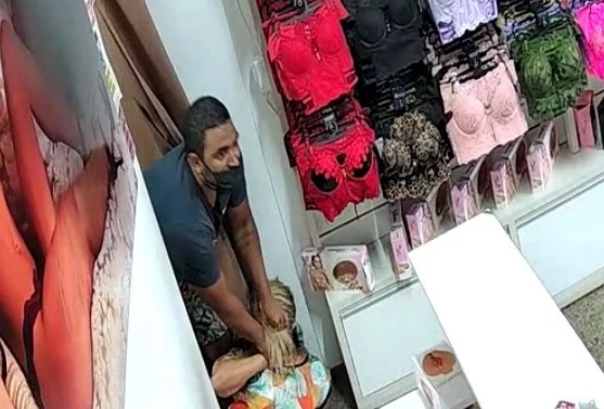 Vídeo gravado por câmeras de segurança de um sexshop mostra momentos de terror vividos por uma mulher, que trabalha no estabelecimento localizado no Riacho Fundo II, em Brasília.