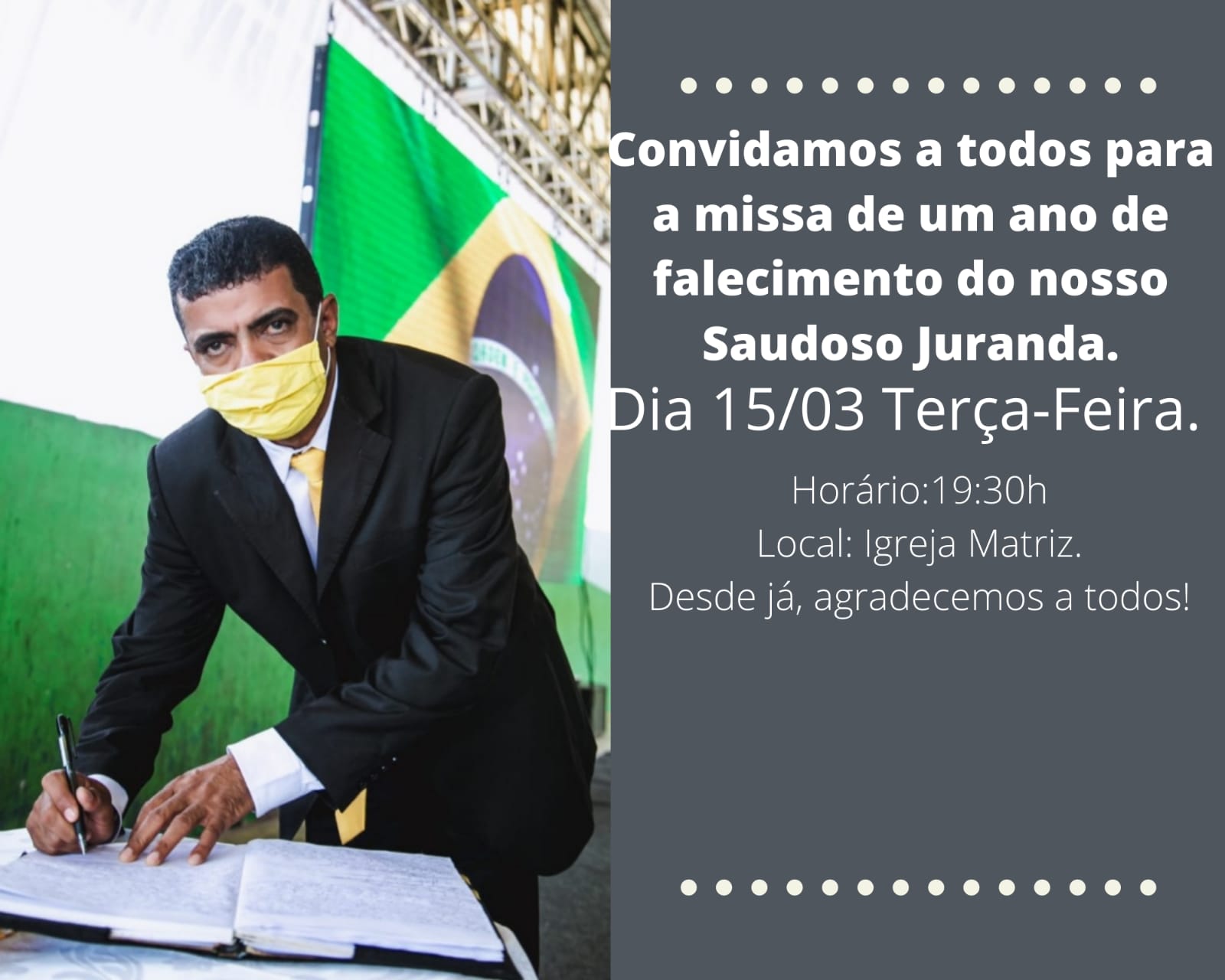 “Ele teve sua carreira na política, com esforço e dedicação conquistou sua candidatura enfatizando respeito aos seus adversários”, anota Lincoln Tejota na justificativa de sua propositura.
