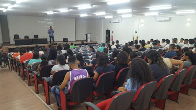 Já a aula da turma de Administração, juntamente com a turma do curso de Formação Inicial e Continuada (FIC) em Atendimento ao Público, teve início às 19h. Na ocasião, foi ministrada a palestra com o tema: